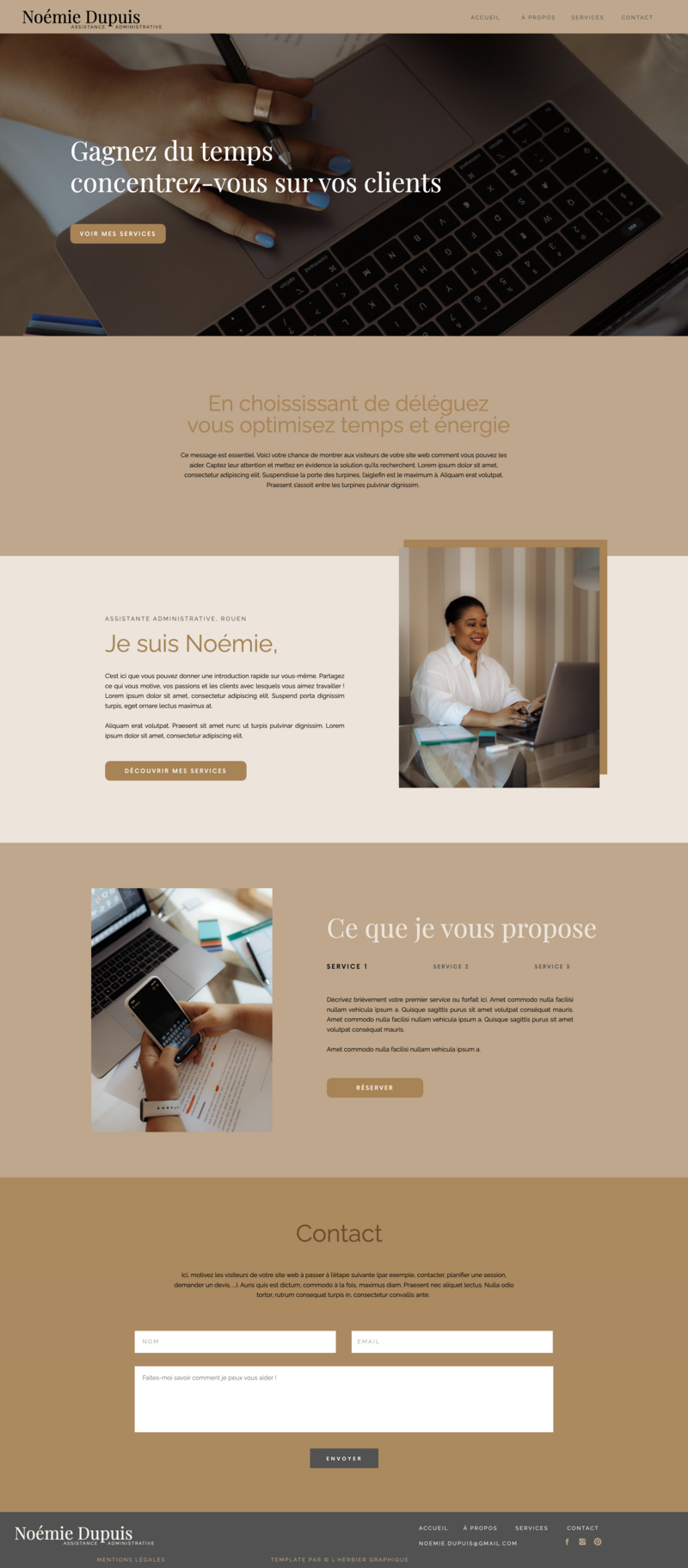 Le design est canon et hyper fluide ! J’ai juste eu à remplacer les contenus et mon site était prêt. En quelques jours, j’ai pu publier un site pro, esthétique et efficace.
