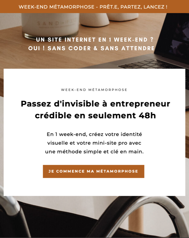 Prêt à créer votre site en 48h ? Découvrez le Weekend Métamorphose à 47€.